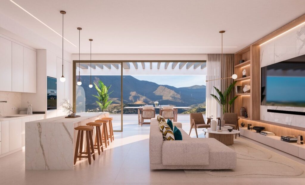 Maralto is een nieuw en exclusief woonproject in de gewilde wijk Las Mesas in Estepona aan de Costa del Sol. Dit moderne residentiële complex biedt een gevarieerd aanbod van 164 appartementen en penthouses met 1, 2 of 3 slaapkamers, elk ontworpen om licht, ruimte en comfort te maximaliseren. De woningen hebben open interieurs, grote raampartijen en royale terrassen met panoramisch uitzicht op de Middellandse Zee en de omliggende bergen.