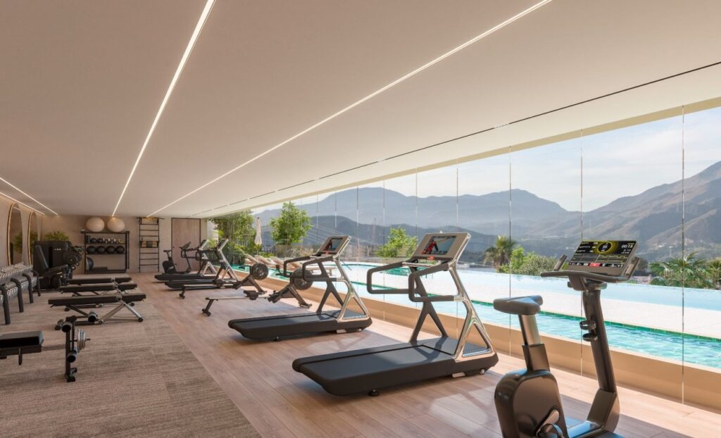 • Volledig uitgeruste fitnessruimte voor sport en training.